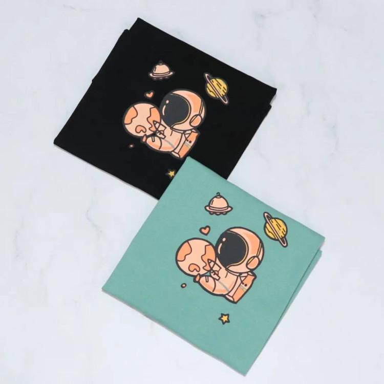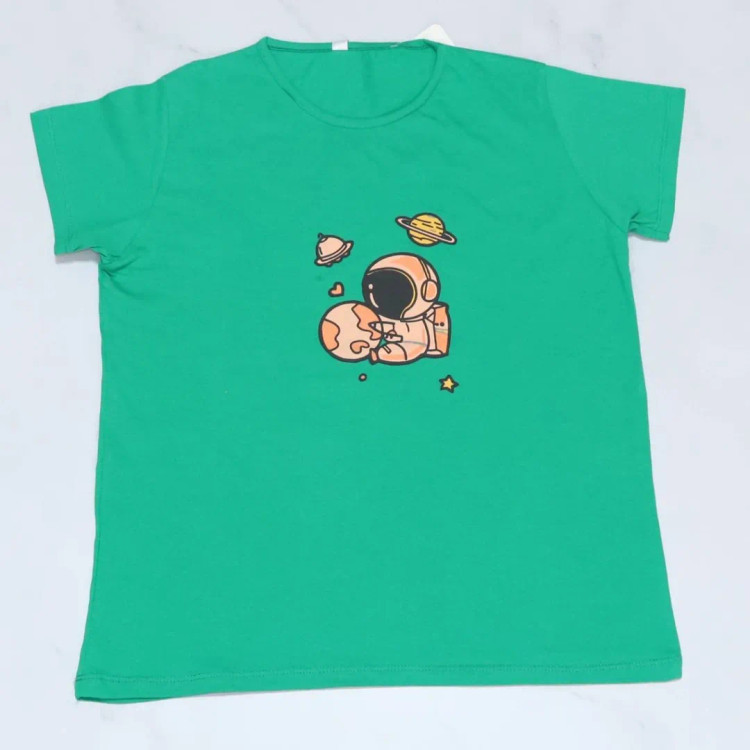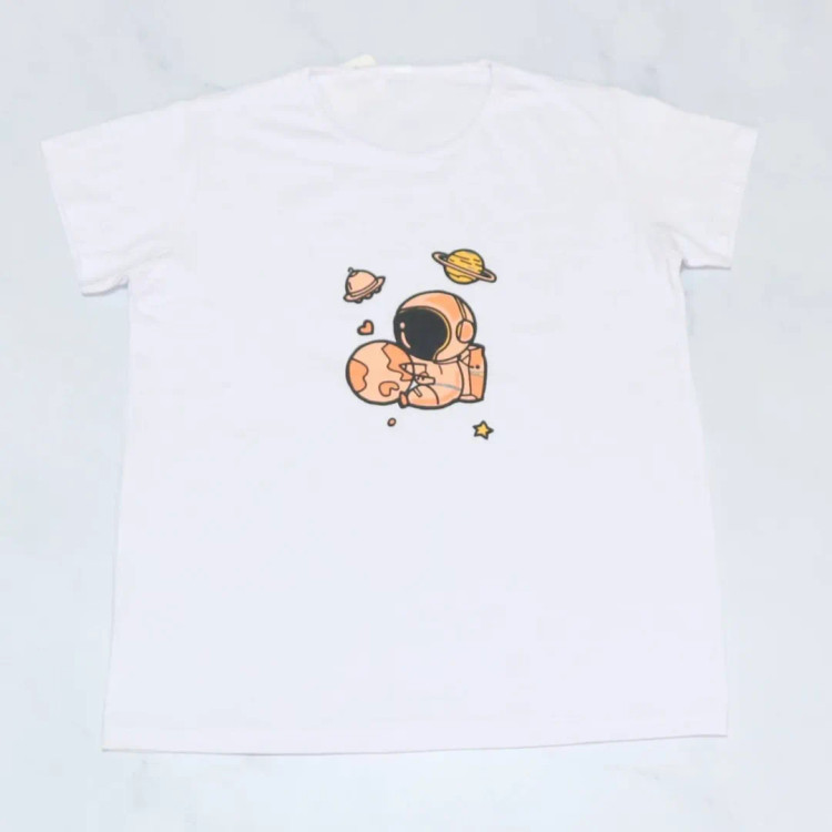 تیشرت فضانورد جنس نخ پنبه، سایز فری مناسب ۳۶ـ۴۴. عرض تیشرت: ۴۸ـ۴۹ با کشسانی: ۵۵، قد تیشرت: ۶۳، قد آستین: ۱۴. تمامی عکس ها از خود محصول و بدون هیچ گونه ادیت بارگذاری میشود.