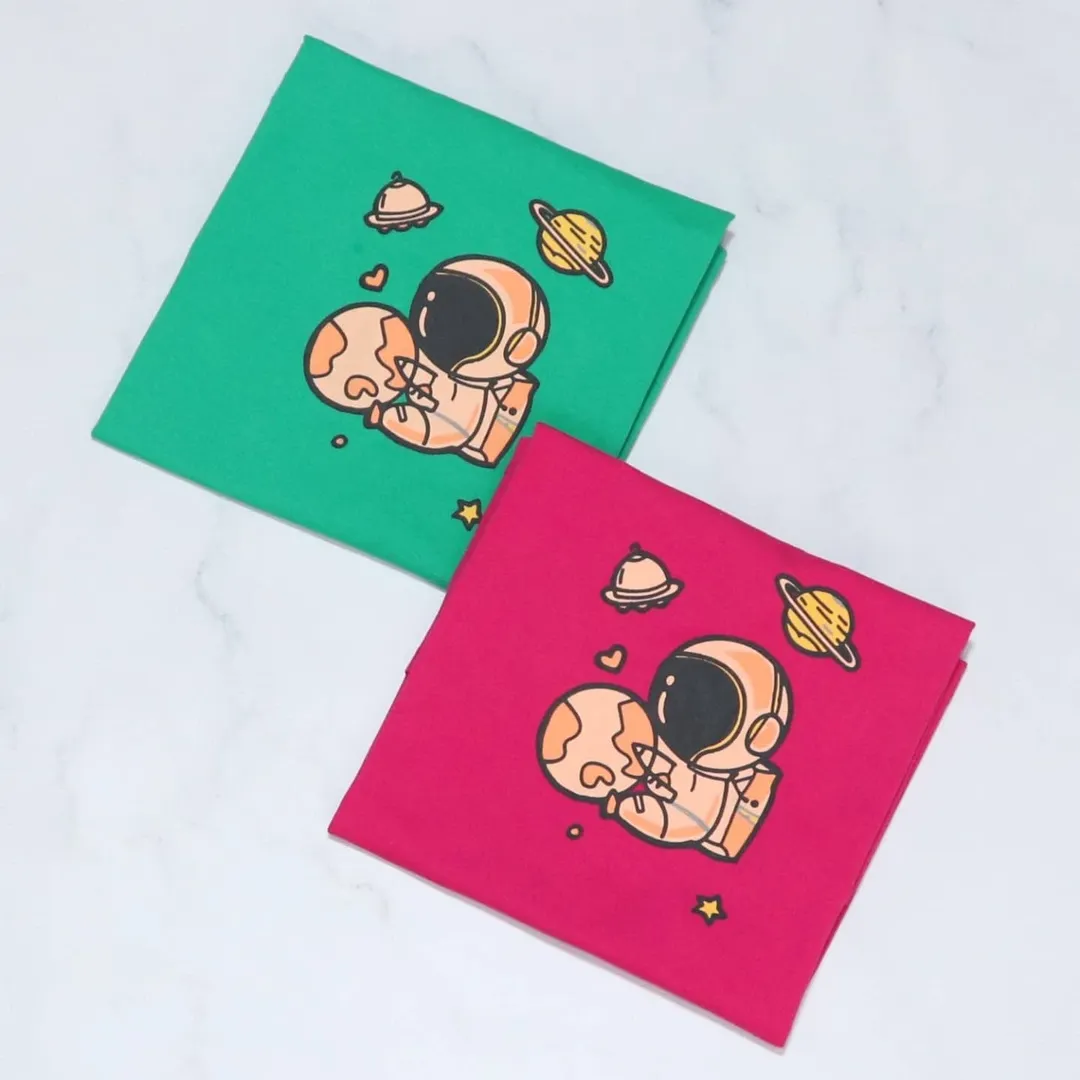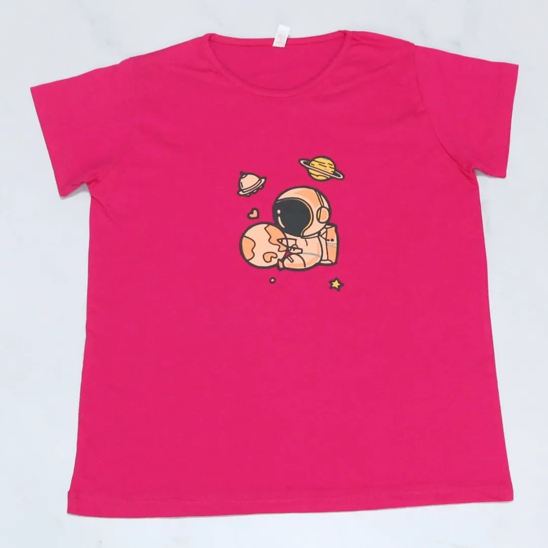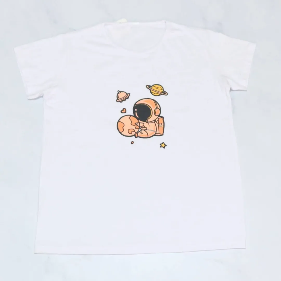 تیشرت فضانورد جنس نخ پنبه، سایز فری مناسب ۳۶ـ۴۴. عرض تیشرت: ۴۸ـ۴۹ با کشسانی: ۵۵، قد تیشرت: ۶۳، قد آستین: ۱۴. تمامی عکس ها از خود محصول و بدون هیچ گونه ادیت بارگذاری میشود.